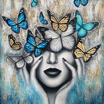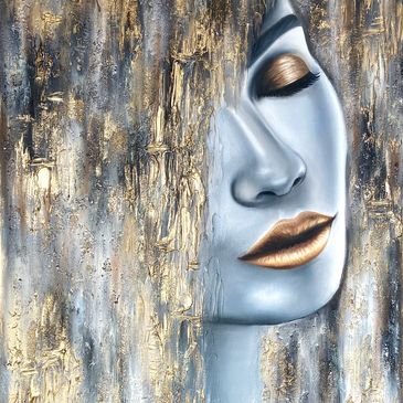 My works include a variety of different mediums such as acrylic, oil, gold leaf and textured paste. I’m always excited to try and experiment with new materials and techniques.